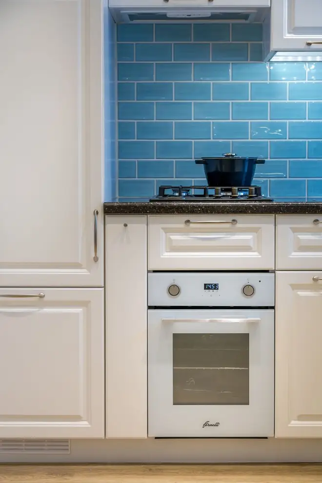 Si aici accentele scandinave se fac recunoscute prin placile de faianta in nuante de turcoaz si plantele decorative.