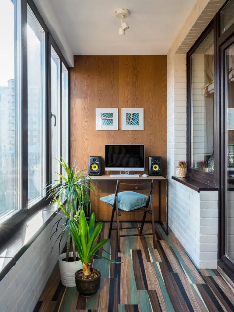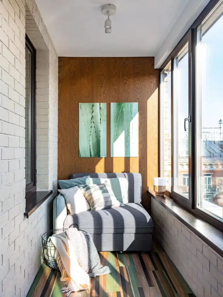 Transformarea balconului intr-un spatiu perfect locuibil devine punctul de interes al intregii amenajari. Amplasarea unui fotoliu si a unei mese de birou accesorizate corespunzator, fac din balcon un loc destinat petrecerii timpului intr-un cadru intim.