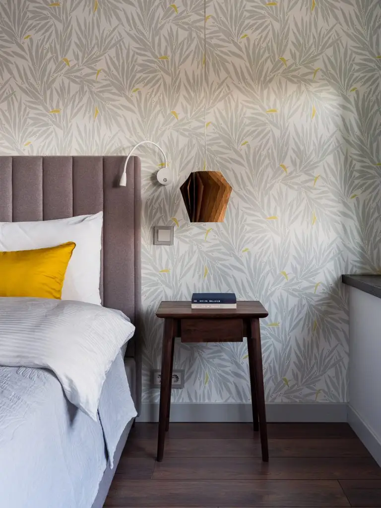 Peretii sunt complet acoperiti de un tapet ce ilustreaza vegetatia, lemnul apare in structura corpurilor de iluminat si a noptierelor, iar plantele naturale se aseaza uniform in bataia luminii naturale.