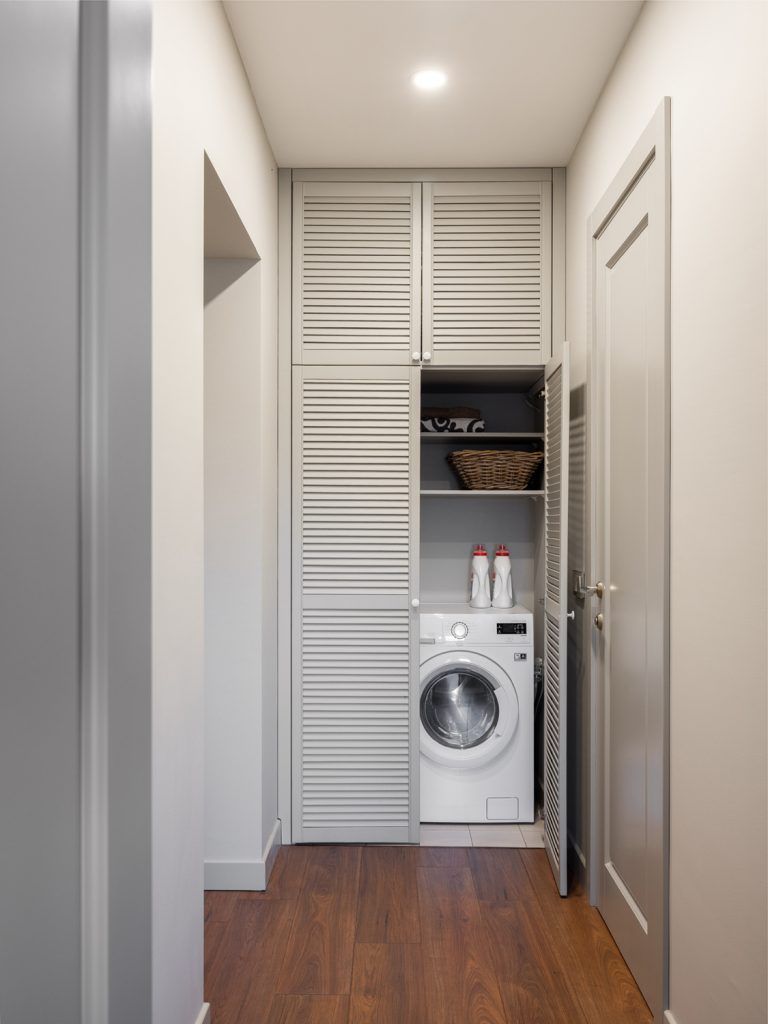 Lungimea holului permite acestuia sa isi dezvolte un rol practic prin asigurarea unor spatii generoase de depozitare atat a articolelor vestimentare, cat si a electrocasnicelor.