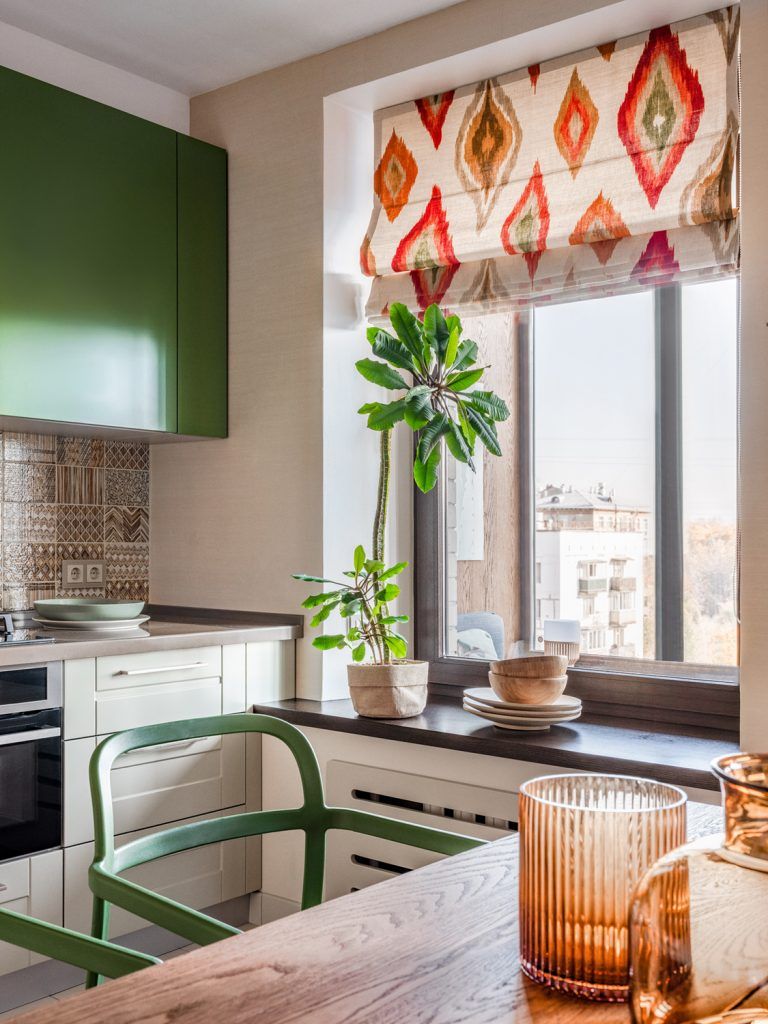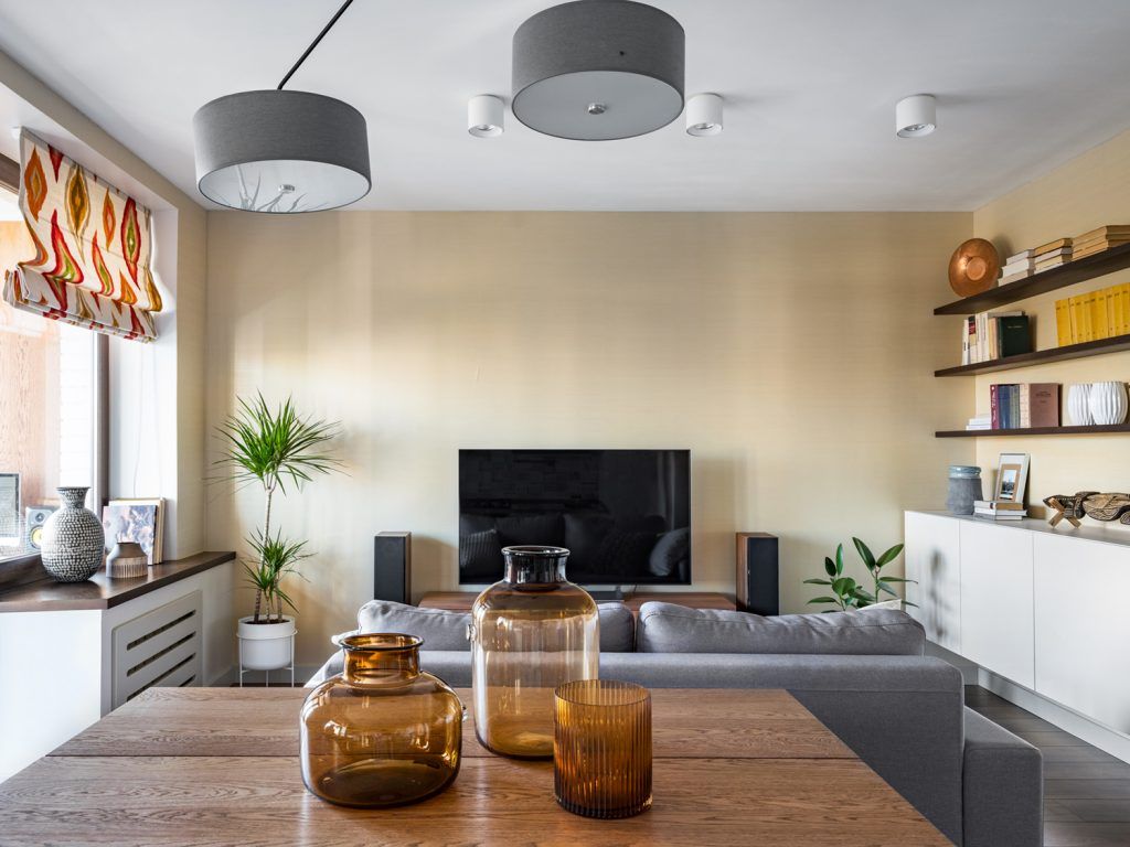 Living-ul si bucataria formeaza impreuna un spatiu deschis, primitor, caruia i se adauga un balcon pe lung, modificat si acesta intr-o mini incapere dedicata relaxarii. Accentele retro moderne sunt cele care ies indeosebi in evidenta. Se poate remarca o coloristica accentuata prin nuante de verde, rosu si portocaliu, careia i se adauga diferite texturi geometrice neomogene.