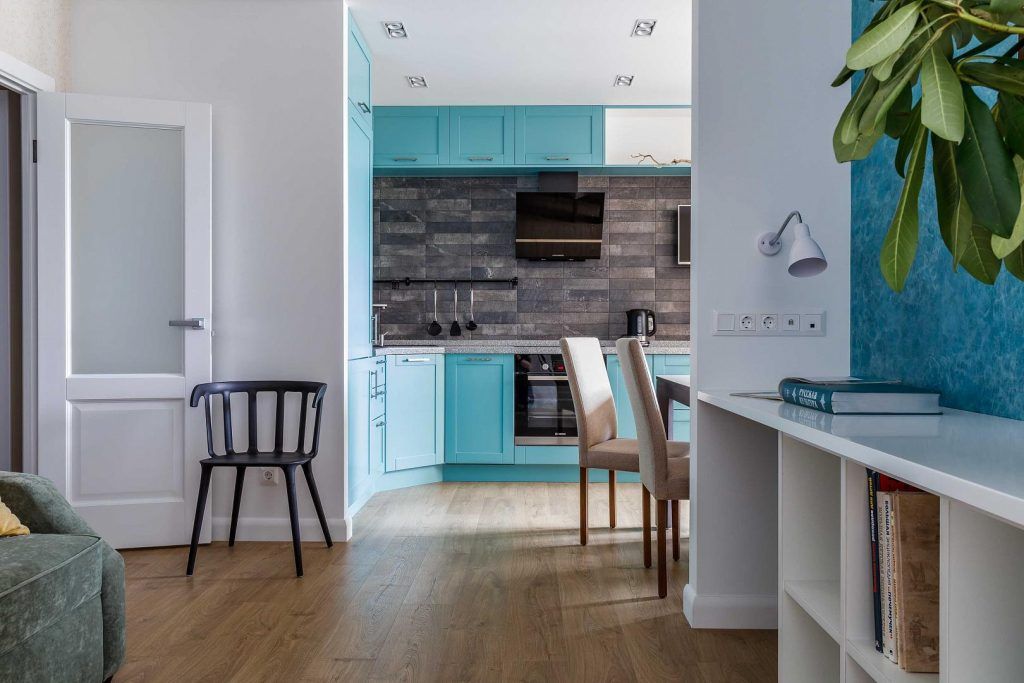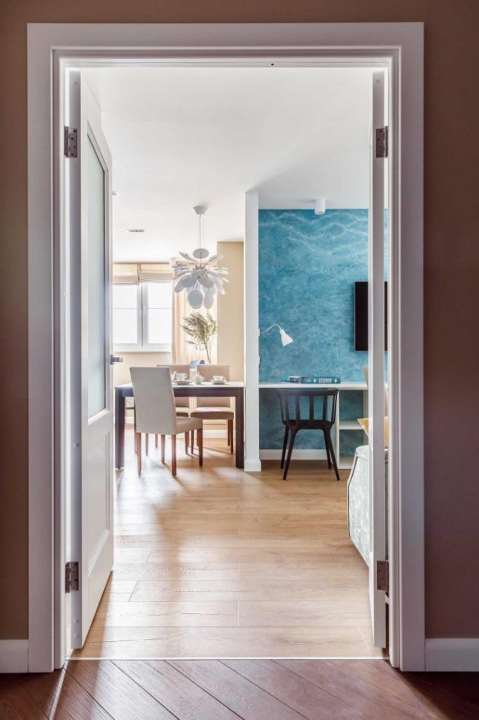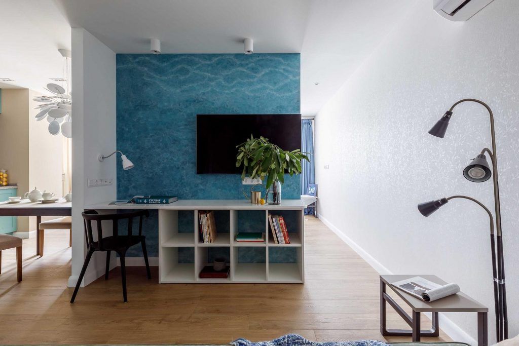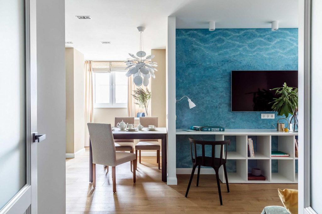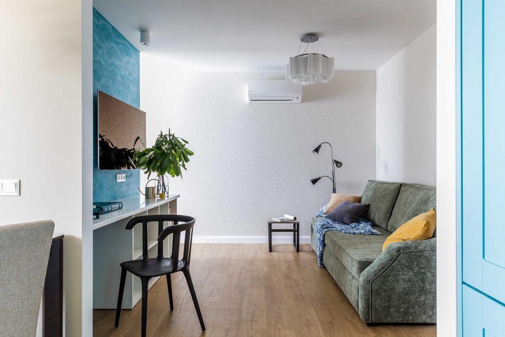 Povestea acestei amenajari a inceput cu provocarea recompartimentarii apartamentului de doua camere pentru a se adapta functional si estetic dorintelor noilor beneficiari. Atmosfera creata este una moderna, tinereasca, plina de viata si culoare; designerii au plecat de la inceputul proiectului cu o paleta cromatica bazata pe nuante de albastru si bej.