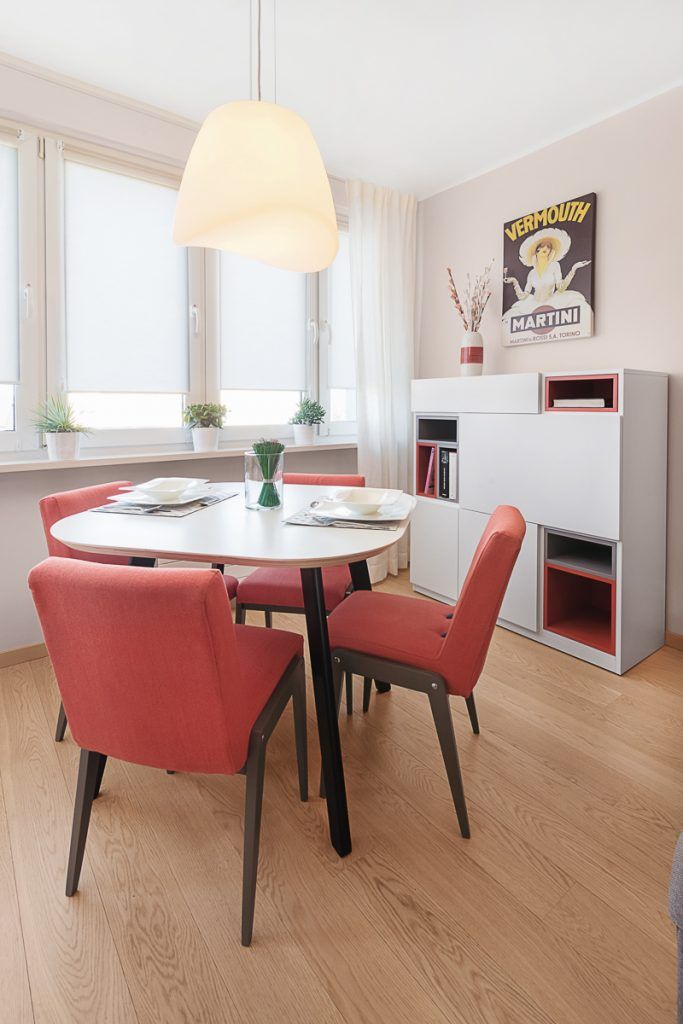 Spatiul rezultat este unul modern, functional, minimalist amenajat. Decorul neutru al zonei de living este pus in valoare de accentele cromatice de rosu. Deschizand bucataria spre living, s-a putut amenaja si un spatiu de luat masa ce face legatura discret intre cele 2 functiuni. In locul unor usi batante, s-a optat pentru o usa culisanta.