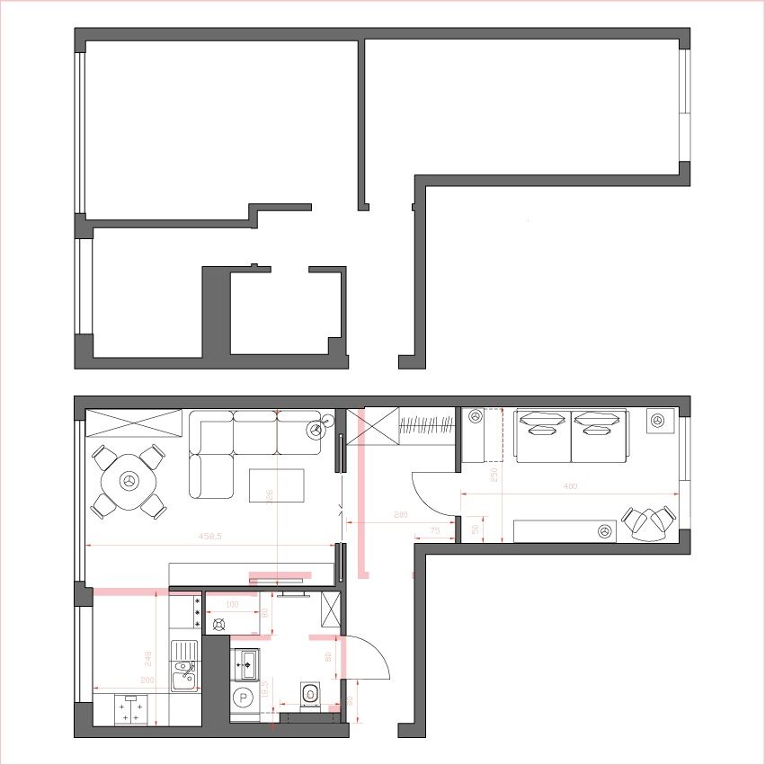 Intr-un proiect de amenajare este nevoie uneori de o reconfigurare a incaperilor, asta insemnand ca unii pereti sunt eliminati sau altii noi ridicati pentru a crea zone functionale. Important de stiut ca aceste modificari se realizeaza doar cu acordul arhitectului astfel incat peretii sa nu faca parte din structura de rezistenta a imobilului. In cazul proiectului de amenajare pentru un apartament de 2 camere despre care vreau sa-ti vorbesc astazi, camerele au suferit modificari menite sa imbunatateasca fluxul de circulatie si sa mareasca functiunile.