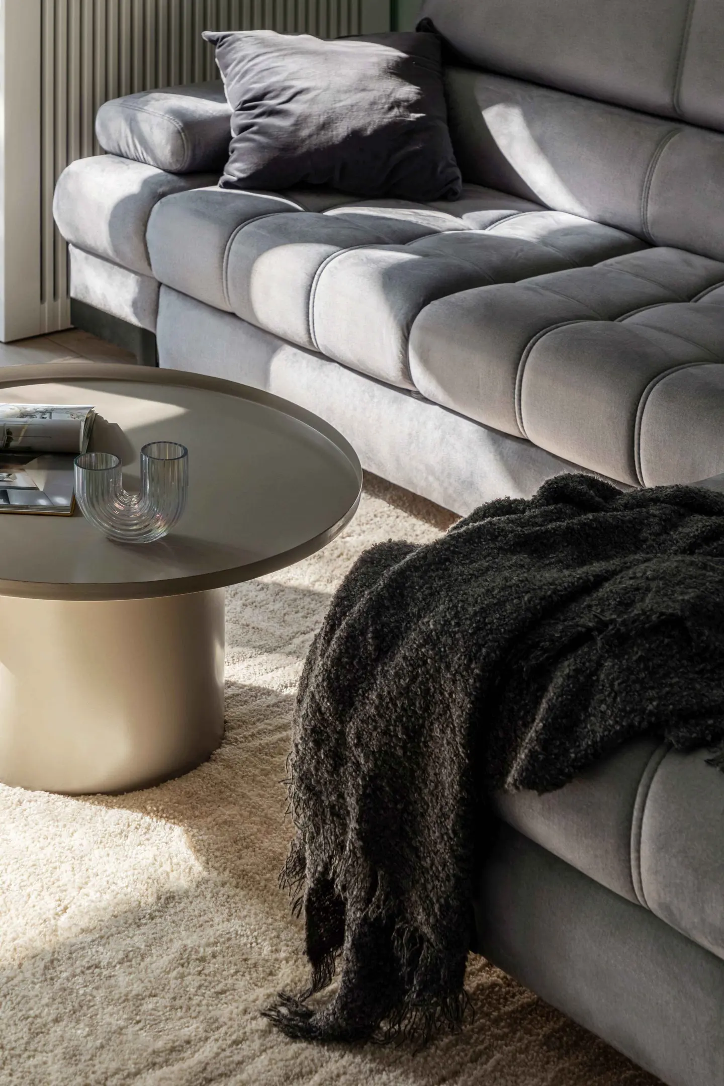 Mobila și accesoriile au fost atent selectate pentru a completa estetica apartamentului. De la canapeaua de la Somproduct la scaunele de masă de la Norda Shop și până la finisajele de la Renodec și terrazzo-ul de la Osmyum, fiecare element a fost ales pentru a aduce confort, stil și funcționalitate.