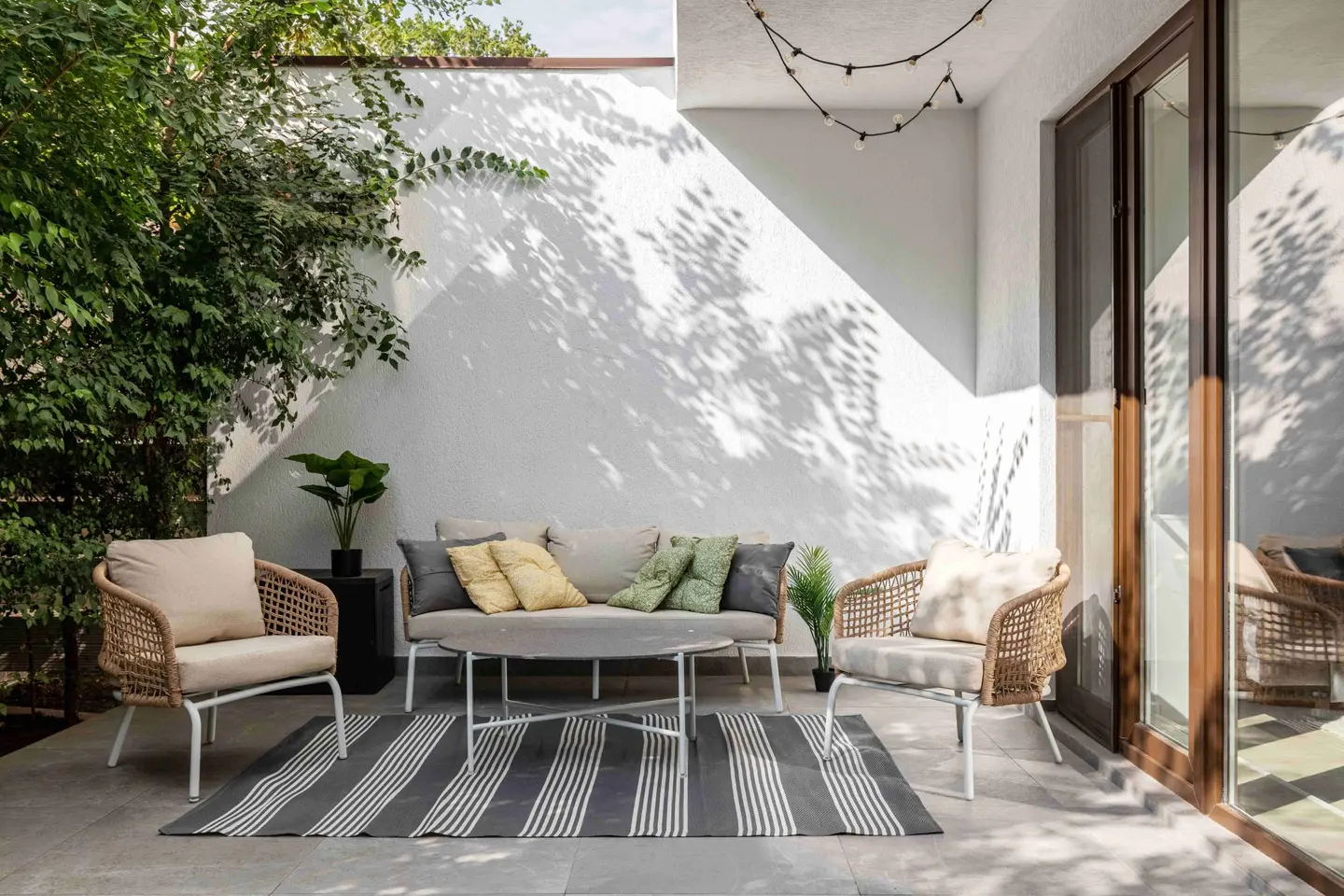 Achiziționat la alb, apartamentul a necesitat o renovare completă pentru a-și atinge potențialul. Printre punctele forte se numără un open space generos și luminos, care a permis crearea unei bucătării spațioase și a două zone de sedere în curte. Însă, apartamentul avea și câteva dezavantaje: dormitoare mici, o baie de serviciu nepractică și finisaje de calitate inferioară. Toate acestea au cerut o abordare creativă și meticuloasă în renovare.
