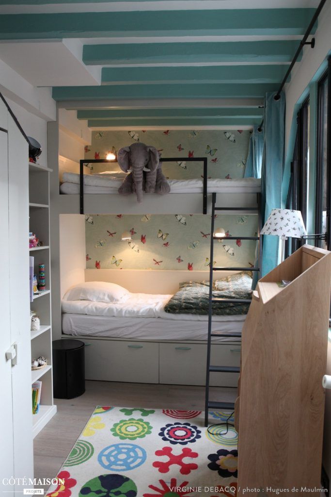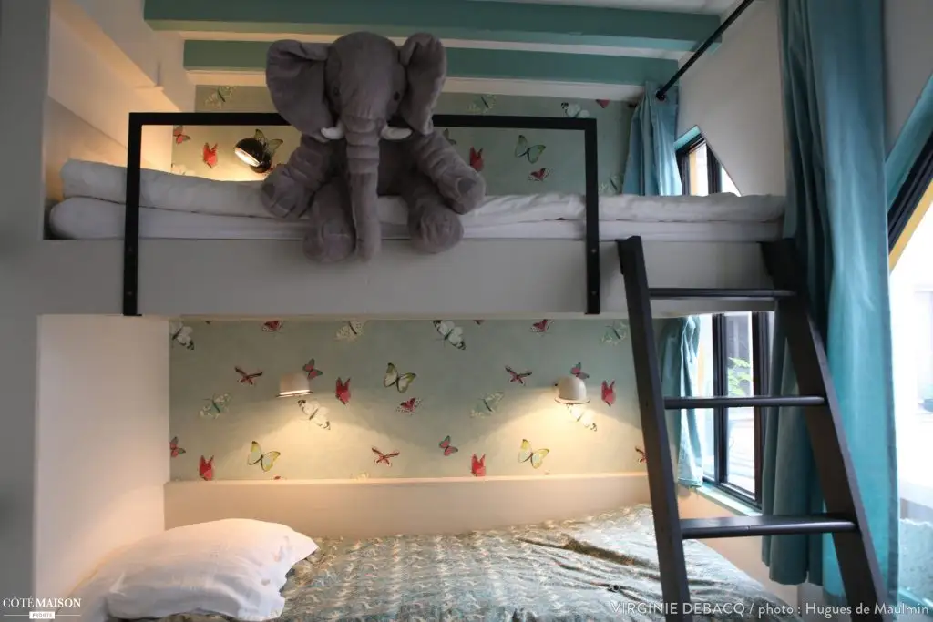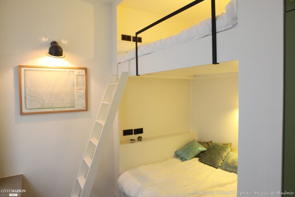 In ambele dormitoare, atat cel al copiilor cat si cel al parintilor, au fost instalate paturi supraetajate. Acest lucru ajuta la o valorificare mai buna a spatiului disponibil dar in acelasi timp ofera casei o nota de autenticitate si nonconformism.