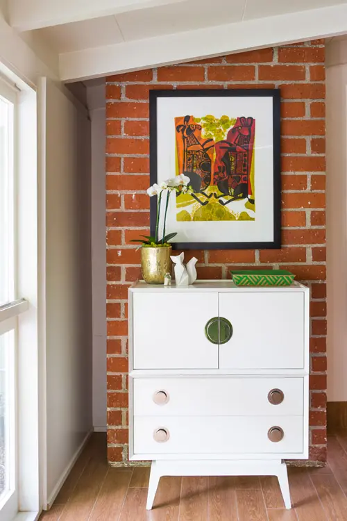 Peretele de caramida falsa un detaliu foarte bine pus in valoare