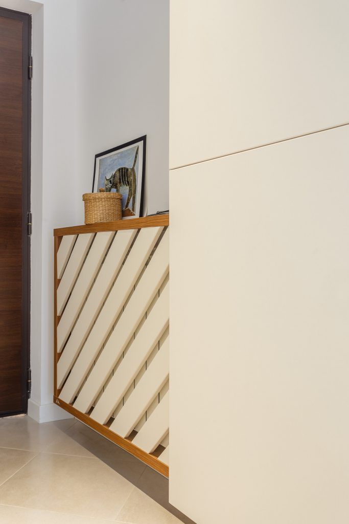 Pentru ca au avut de a face cu o suprafata pe lung, solutia aleasa de arhitecti a fost mutarea accentului pe motivul diagonalei. Astfel, motivele geometrice oblice se regasesc atat in componentele textile, cat si in mobilier sau pe podea.