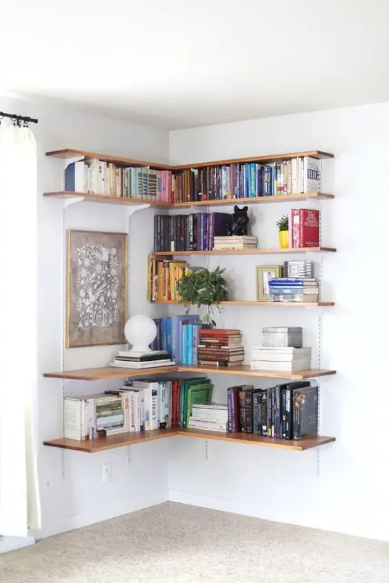 Opteaza pentru rafturi suspendate, construite din tablii de lemn, montate cu ajutorul suportilor in perete. Acest tip de etajere suspendare salveaza mai mult spatiu decat daca ai fi ales o etajera pozitionata pe podeaua livingului.