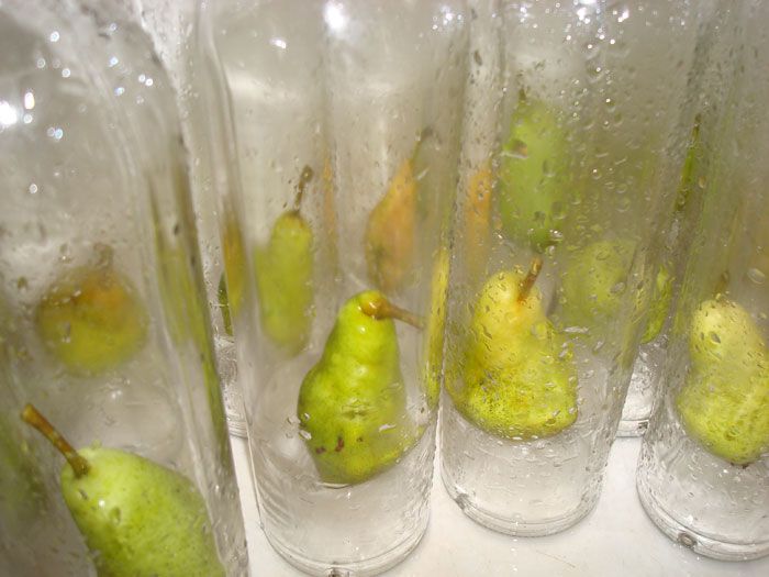 Rupe celelalte fructe, care de regula sunt mai mici decat cele dominante, dupa care sa rupi si frunzele de pe ramura, cat sa incapa sticla aproape in intregime. Sticla trebuie situatua mereu cu capul in jos, deoarece altfel se va umple cu apa de ploaie, iar fructele din sticla se vor strica in interior.