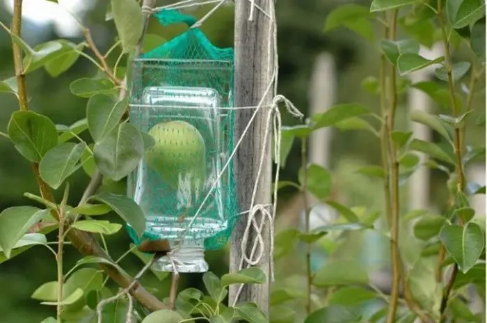 Leaga bine sticla, din ambele capete, pentru ca in situatia in care vantul bate foarte tare, s-ar putea ca ramura sa iasa din sticla si chiar sa rupa fructul.