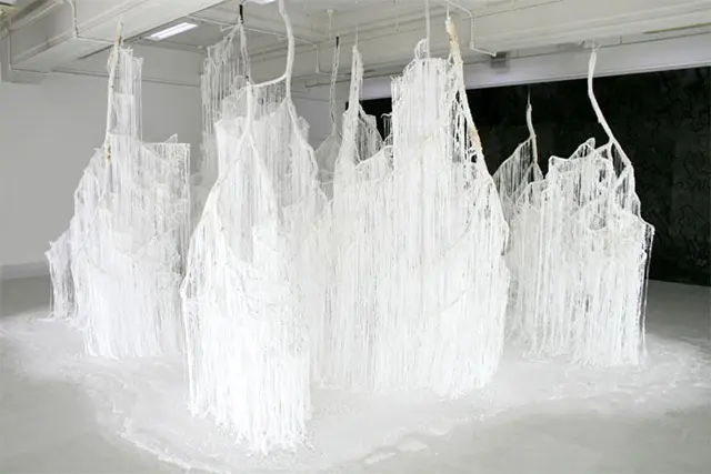 La o prima vedere, ceea ce a realizat Onishi Yasuaki pare a fi o panza imensa de paianjen, insa in realitate este vorba despre o instalatie creata manual care contine 3 feluri de materiale: crengi de copac, silicon fierbinte si uree cristalizata material foarte des folosit in industrica chimica. Instalatia a fost numita “Vertical Emptiness”.
