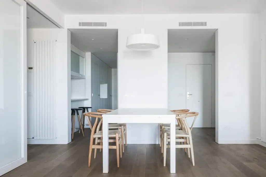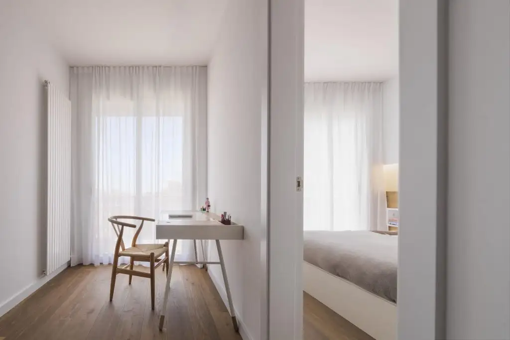 O echipa a biroului de arhitectura Nook Architects au realizat un apartament alb imaculat in Sarria-Sant Gervasi in Spania. Singura cerinta a proprietarei cu privire la spatiul de 115 metri patrati pe care l-a lasat pe mana specialistilor a fost ca acesta sa fie croit pe tiparul nevoilor sale actuale de domnisoara, dar sa poata cu usurinta, pe viitor, sa fie adaptat unei familii.