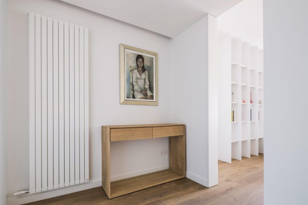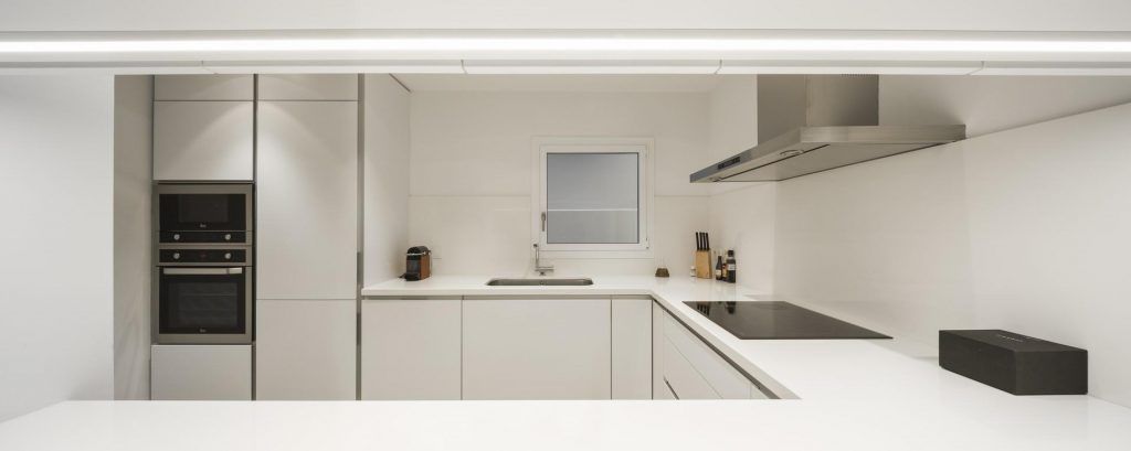 O echipa a biroului de arhitectura Nook Architects au realizat un apartament alb imaculat in Sarria-Sant Gervasi in Spania. Singura cerinta a proprietarei cu privire la spatiul de 115 metri patrati pe care l-a lasat pe mana specialistilor a fost ca acesta sa fie croit pe tiparul nevoilor sale actuale de domnisoara, dar sa poata cu usurinta, pe viitor, sa fie adaptat unei familii.