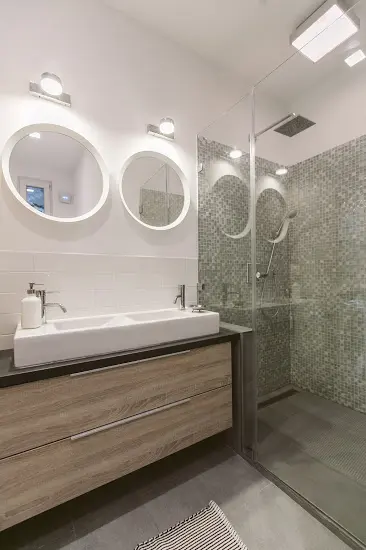 Baile simple, impecabil de albe, dotate cu mobilier si accesorii moderne asigura confortul necesar pentru orice turist, fie ca isi doreste un dus rapid sau o baie relaxanta.