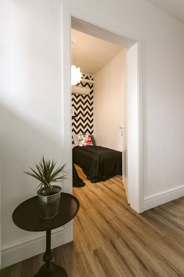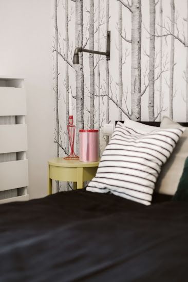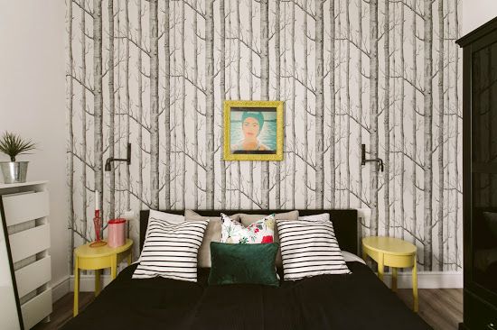 Dormitoarele pastreaza o nota pragmatica, tinand cont de scopul in care este folosit apartamentul. Tapetul cu motiv vegetal, precum si plantele intalnite in toate camerele contureaza un decor scandinav autentic. Imprimeurile, motivele florale si tablourile stilizate ne arata latura boho chic a amenajarii. Ne place latura feminina si boema a dormitorului principal, precum si masculinitatea tiparului geometric si a contrastului alb-negru din camera cea mai mica.