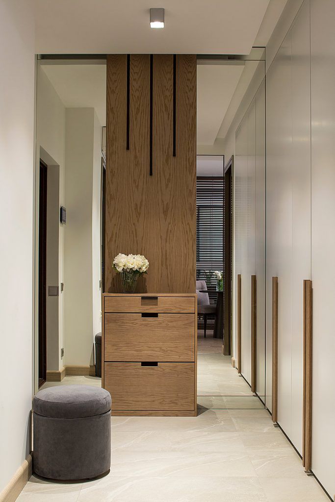 Principala zona de depozitare o vom gasi in hol, unde, pe un intreg perete au fost amenajate dulapurile. Oglinzile montate de o parte si cealalta a pantofarului si pe toata inaltimea peretelui creeaza impresia de largire a spatiului.