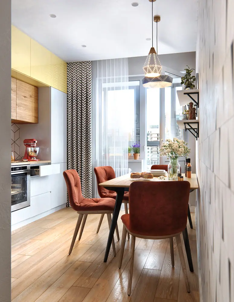 Iti propunem astazi sa descoperi amenajarea unui apartament de 65 metri patrati gandita pentru un cuplu de tineri din Sankt Petersburg. Si-au dorit un spatiu tineresc, vesel si primitor cu un design actual. Desi aveau cateva idei despre cum voiau sa arate amenajarea, au hotarat sa apeleze la ajutorul designerului Oleg Mints. Iata cum a fost dezvoltat proiectul.