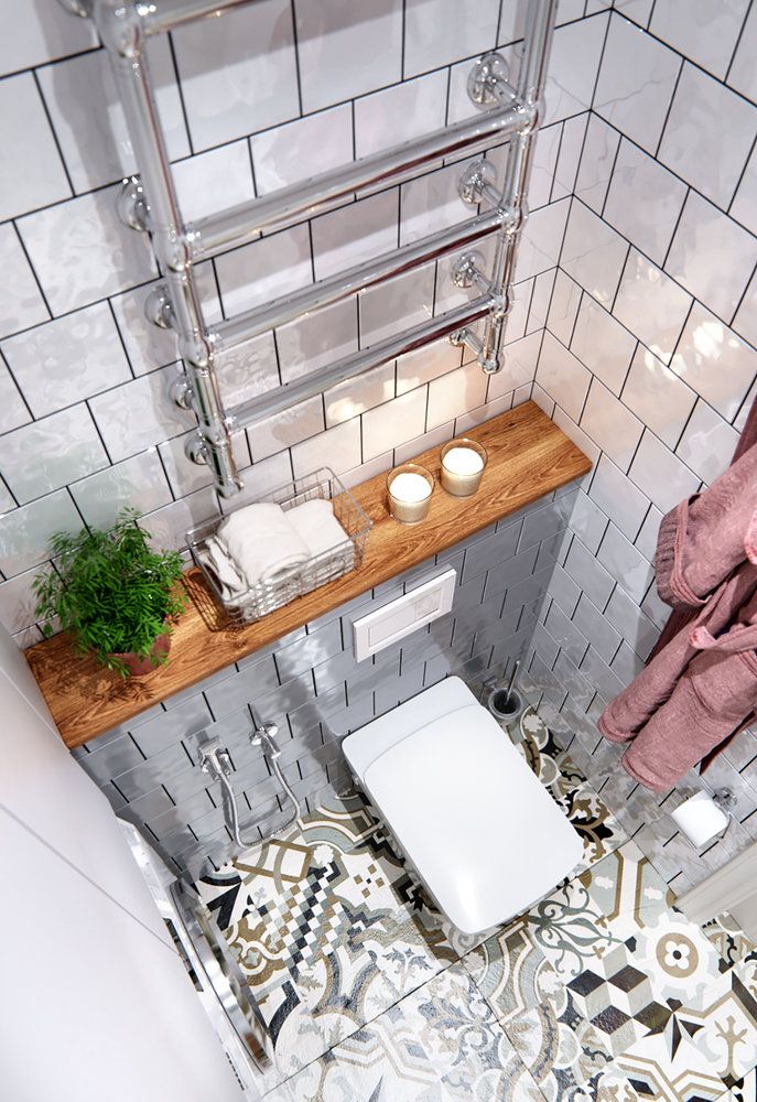 Pentru baie s-au folosit aceleasi placi decorative pe care le regasim si in hol. Masina de spalat rufe a fost integrata intr-o nisa cu spatii de depozitare generoase. Pentru o utilizare optima a spatiului, a fost gandita o zona de dus tip walk-in, iar corpul de sub lavoar este suspendat, lasand cat mai mult spatiu la nivelul pardoselii.