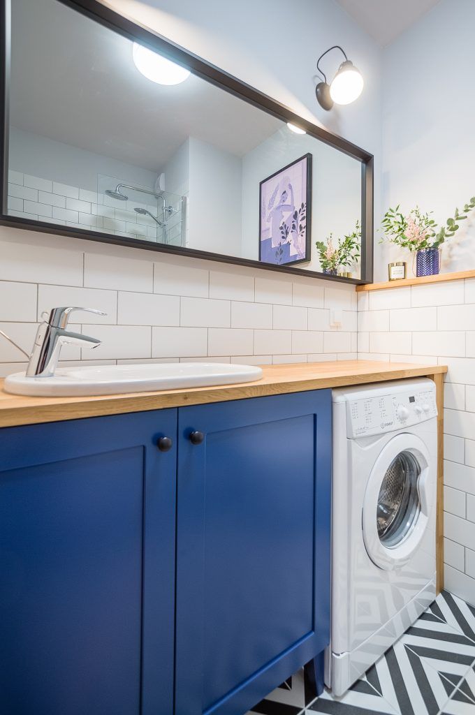 Chiar si in baie a fost prevazut un spatiu pentru depozitare imediat sub lavoar, incluzand si masina de spalat rufe.