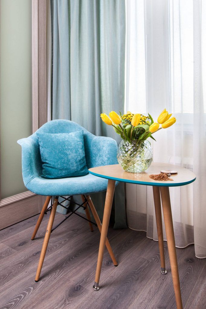 Cromatic, predomina turcoazul si verdele ca nuante de accent, iar fundalul este preponderent neutru pentru a le pune in valoare. Corpurile de iluminat sunt si ele atent alese pentru a asigura o lumina potrivita fiecarei zonein parte.