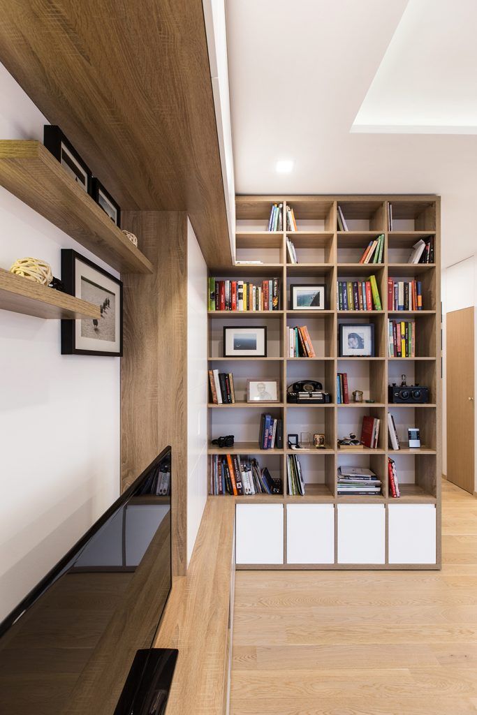 Spatiile de depozitare, o problema des intalnita in apartamentele de bloc, sunt dispuse sub diferite forme; corpurile din living formate din dulapuri si sertare, precum si un corp separat de biblioteca incastrat intr-un soi de nisa.