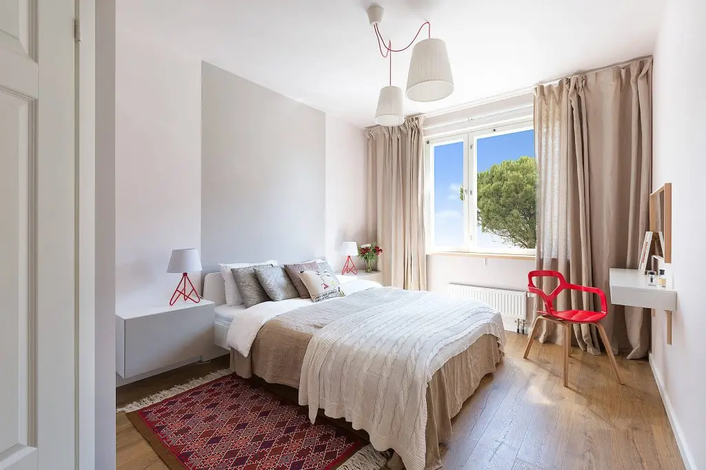 Desi exista doua functiuni principale, pe langa ele vom gasi si un loc pentru luat masa amenajat chiar la fereastra, dar si un spatiu mic creat pentru lectura (vezi fotoliul si lampadarul).