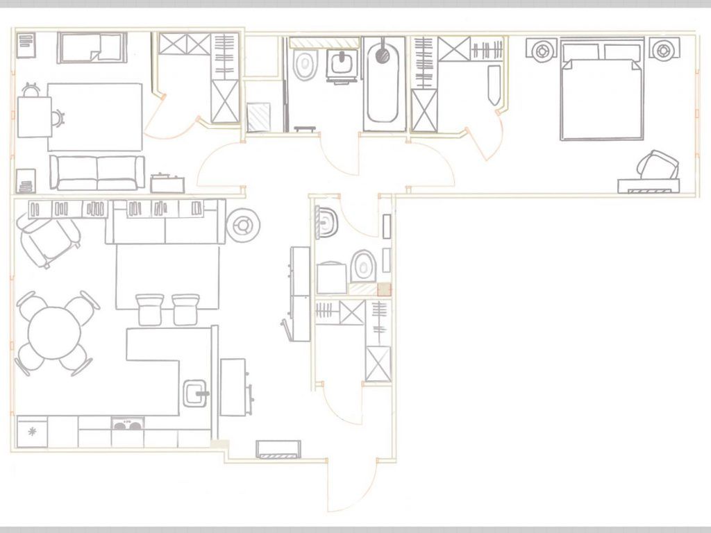 Zona de zi si cea de noapte sunt delimitate, distributia functiunilor fiind una coerenta. Livingul si bucataria compun un tot unitar gandit pentru ca familia sa petreaca timp impreuna, chiar si atunci cand se gateste. In zona de noapte, au fost creionate cele doua dormitoare, cu doua bai dispuse paralel.