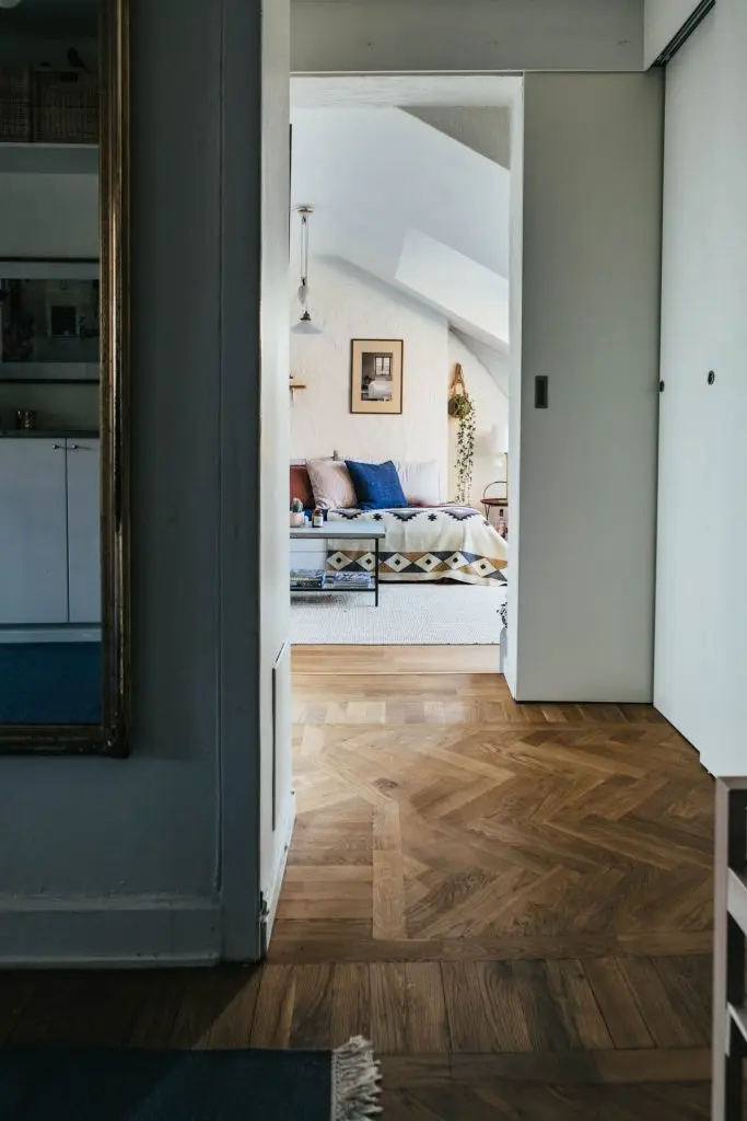 Micile imperfectiuni sunt cele care confera spatiului farmecului lui. Pornind de la configuratia neobisnuita a interioarelor, pana la finisajele peretilor sau mobilierul cu patina sau aspect nefinisat, impreuna contureaza o locuinta boema, cu un aer desprins parca dintr-o alta epoca.