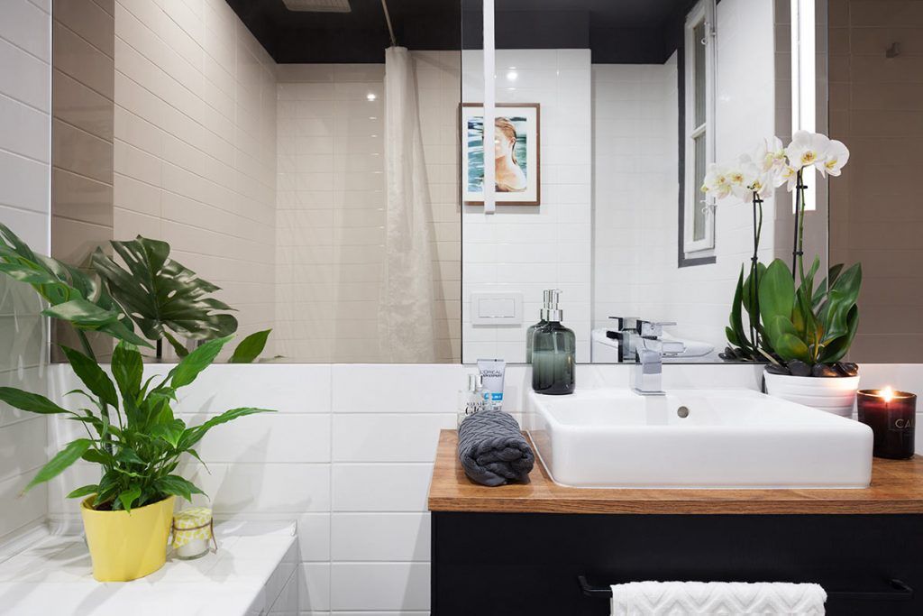 Recunosc, nu m-am gandit niciodata la un tavan negru pentru baie! Dar iata ca am gasit si amenajarea care imi dovedeste cat de bine poate arata o combinatie alb-negru pentru baie cu tavan negru, gresie neagra si faianta alba. Si nu e deloc apasator pentru ca venind cu luminile potrivite obtii exact efectul dorit. Impecabil!