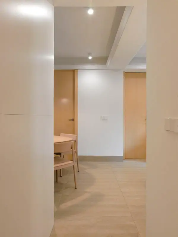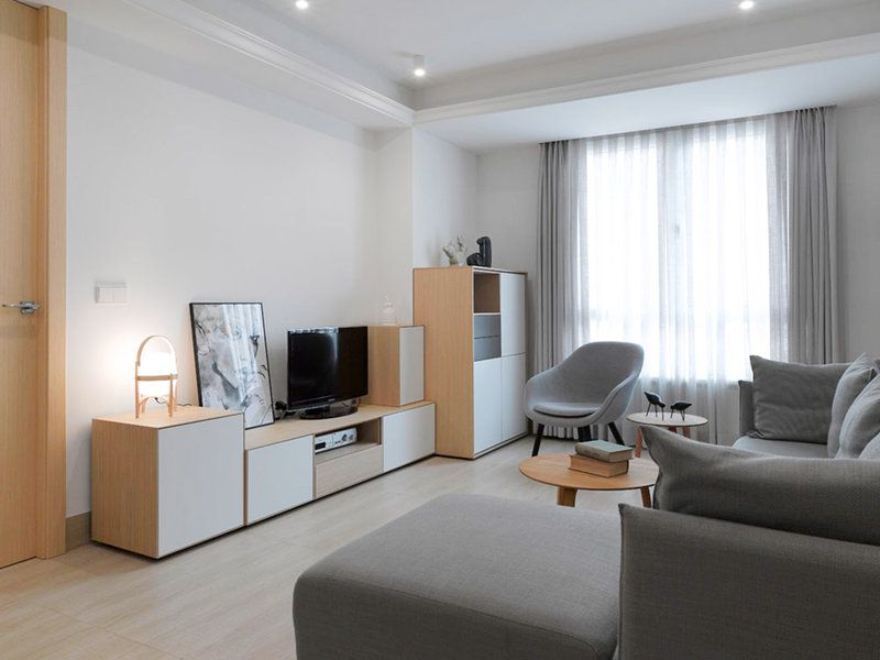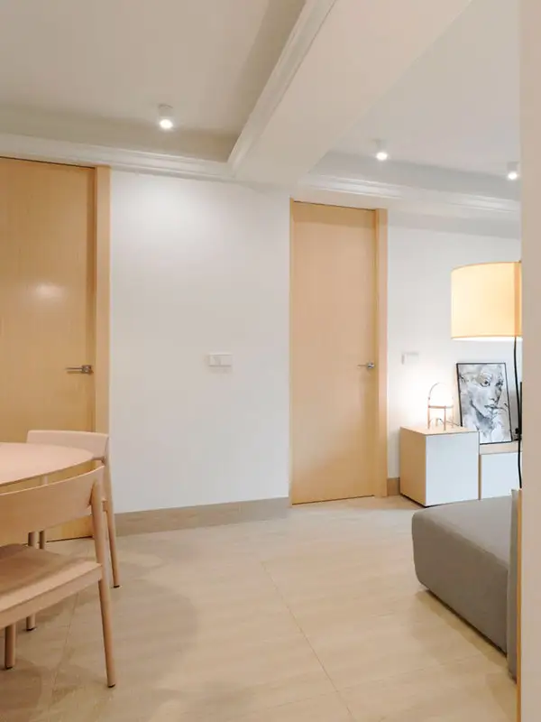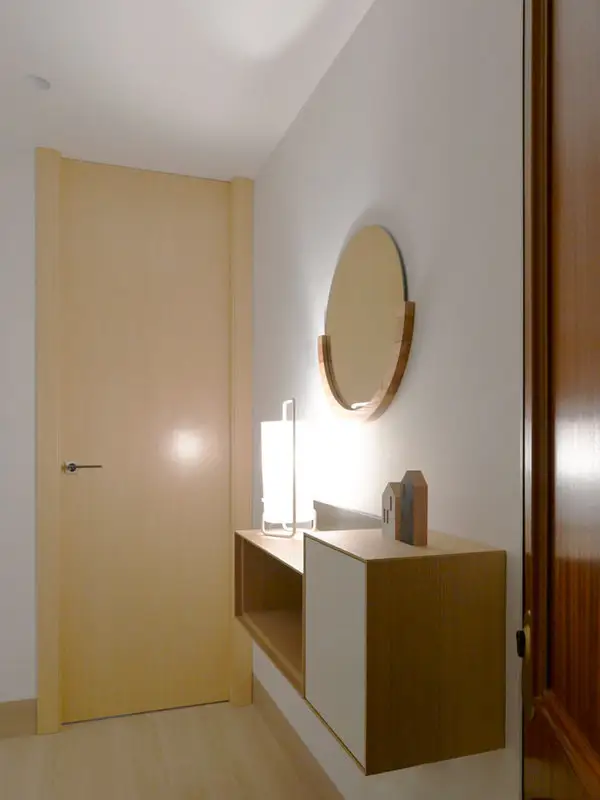 Amenajarea urmeaza linia unui design minimalist, unde au fost integrate piesele de mobilier de baza, pastrand astfel spatiul cat mai aerisit. In acelasi scop, s-a folosit mult alb alaturi de o nuanta de lemn natur ce ofera caldura spatiului, echilibrand cromatic decorul.