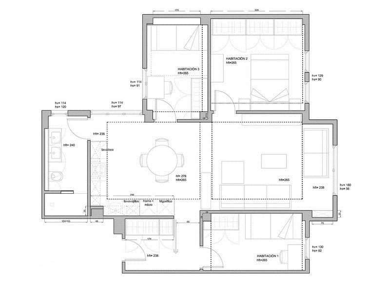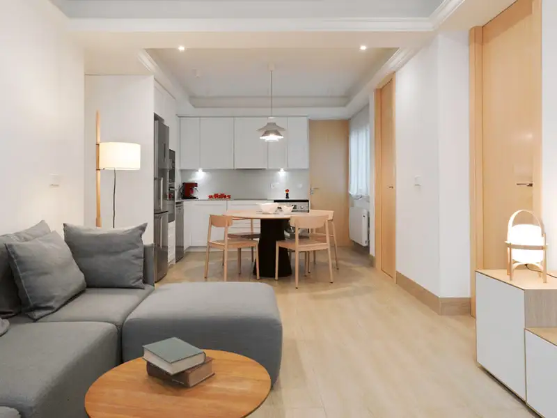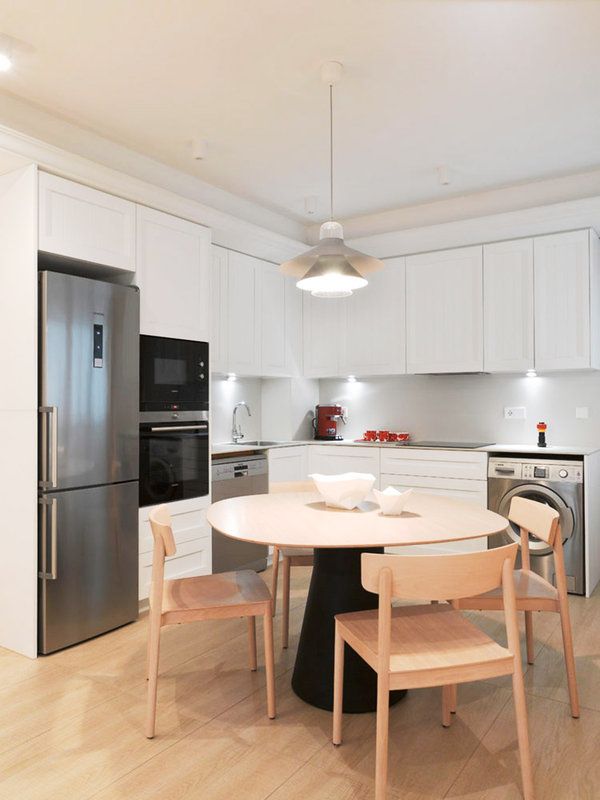 Ce a facut designerul impreuna cu echipa sa? Primul pas a fost redistribuirea functiunilor sau mai bine zis, crearea unei zone de zi compacte, in plan deschis, reunind livingul, bucataria si o zona pentru luat masa. Pentru a obtine acest lucru, au fost eliminati peretii care nu afectau structura de rezistenta a imobilului. Acum spatiul este fluent si mai luminos.