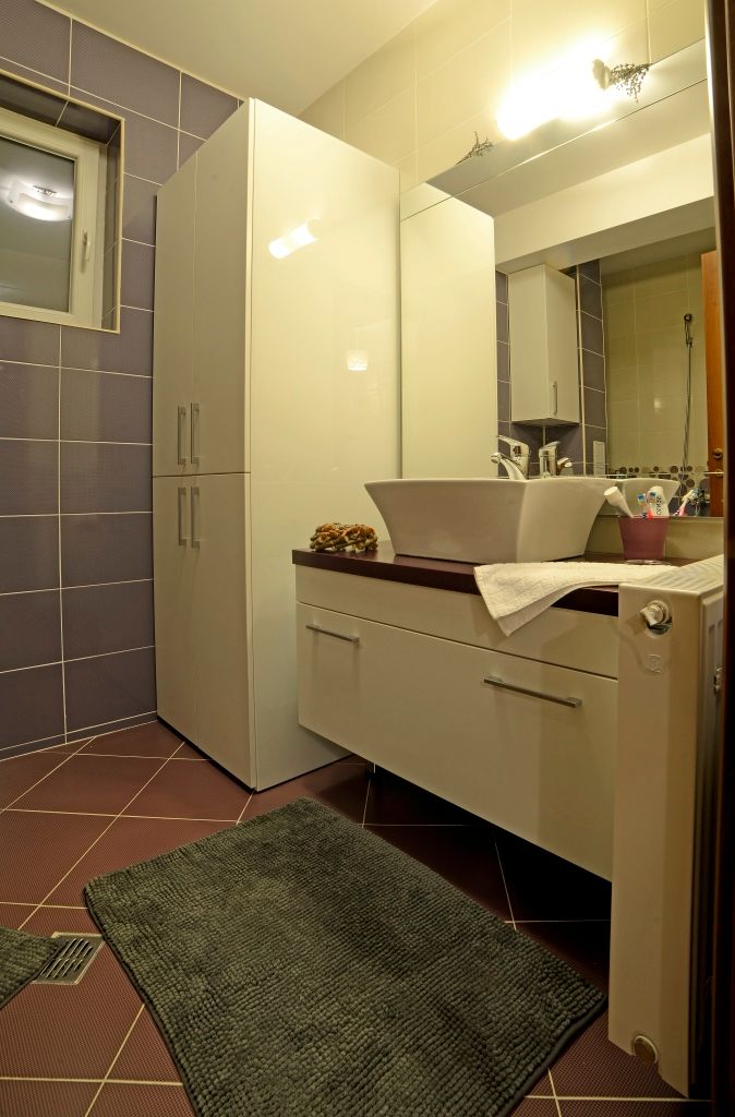 La preluarea proiectului, un apartament cu trei camere de aproximativ 65 mp, incaperea avea deja gresie, faianta, usi, ferestre si obiecte sanitare, asa ca s-a pornit de la aceste detalii.