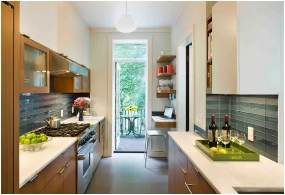 Bucatariile tip insula sunt grozave pentru ca iti permit sa delimitezi spatiul folosit pentru gatit de cel pentru birou. Iti vei face mai putine griji pentru petele sau micile accidente care ti-ar putea periclita hartiile sau chiar laptopul.