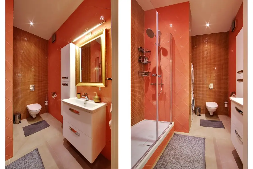 De remarcat, de asemenea si vopseaua decorativa aplicata pe pereti care sporeste senzatia de spatiu cald si primitor.