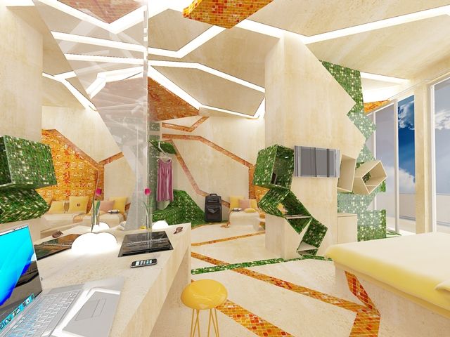 Deschide GaleriaConceptul este reprezentat de niste interioare captivante care pur si simplu iti taie rasuflarea. Ideea este aceea de conversie a suprafetelor din apartamente, plecand de la pereti, pana la tavan, intr-o sculptura tridimensionala.