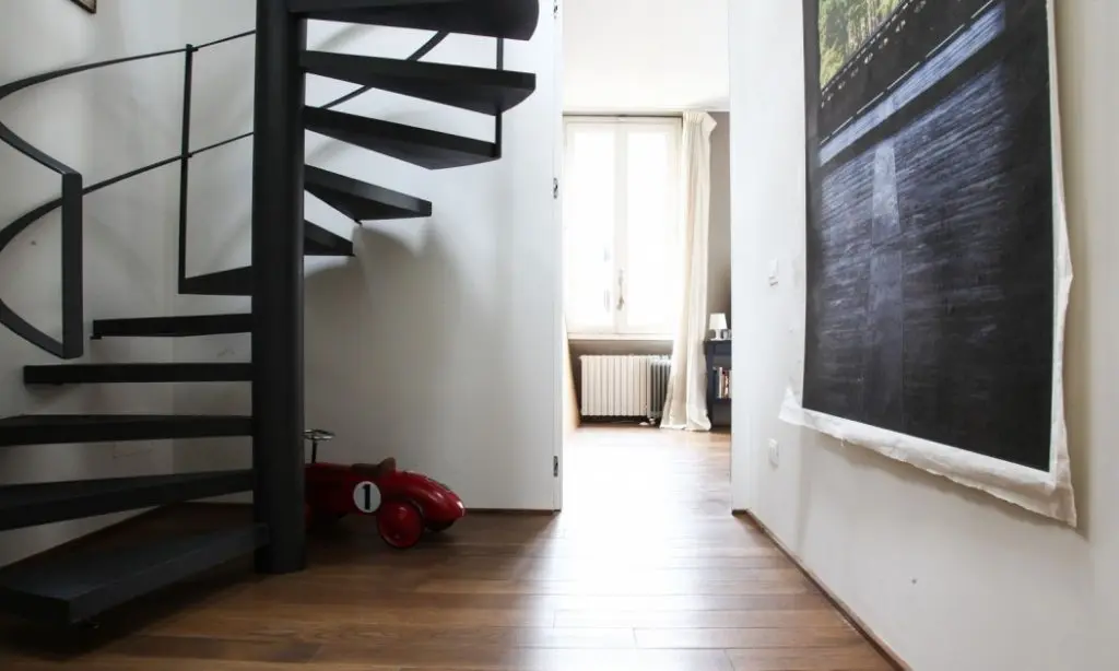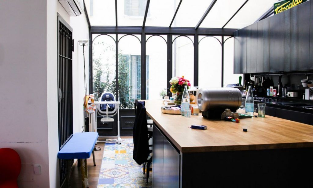 Initial, structura imobilului era diferita, fiind impartit in 6 apartamente mai mici. Dorinta lor a fost sa pastreze scara centrala iar restul spatiului sa fie reimpartit astfel incat casa sa para o structura compacta, deschisa cu spatii ample si foarte luminoase. Zona dedicata bucatariei este una generoasa fiind direct conectata cu livingul.