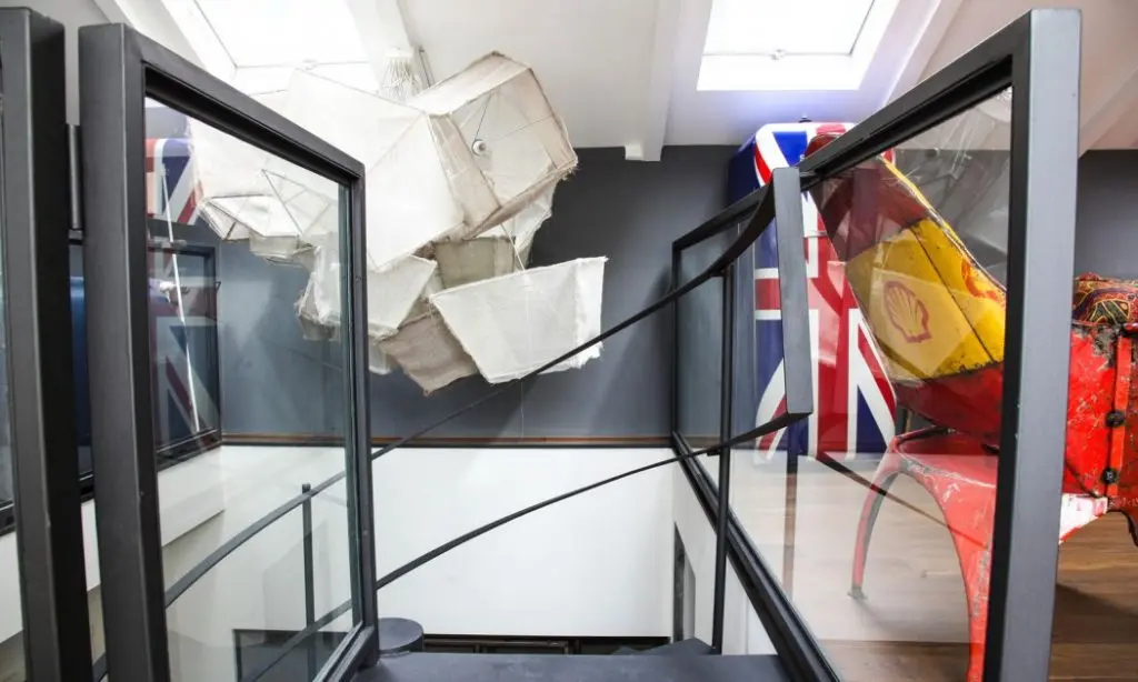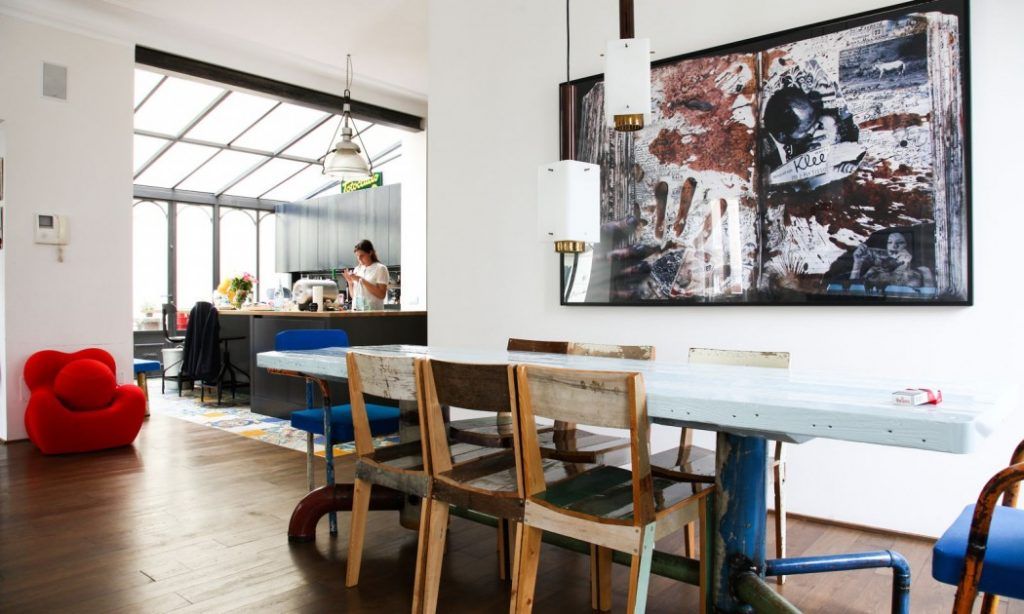 Amenajarea abunda in elemente care iti atrag privirea la orice pas. Atentia catre detalii este la rang de arta in casa acestui cuplu. Peste tot vom gasi elemente din diverse epoci si culturi, toate reunite maiestuos intr-un eclectism original, unde stilul industrial predomina prin detaliile si culorile abordate.
