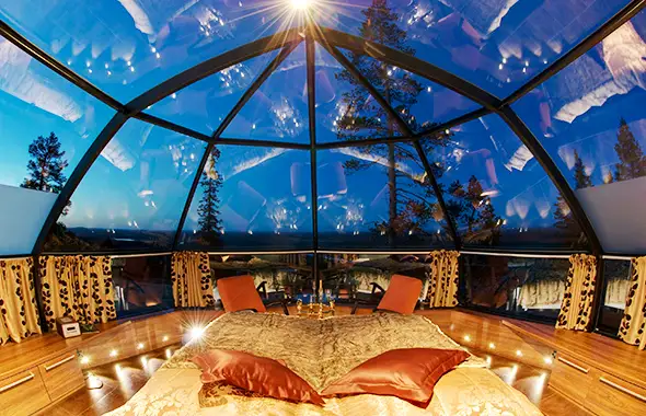 Tocmai din cauza temperaturilor extreme de afara, igluurile au fost construite dintr-o sticla speciala, rezistenta la orice conditii meteorologice si la presiunea zapezii. Mai mult decat atat, acestea isi mentin constanta o temperatura potrivita pentru ca geamurile sa nu se abureasca, astfel incat turistii sa poata privi Luminile Nordului si stelele de pe cer.