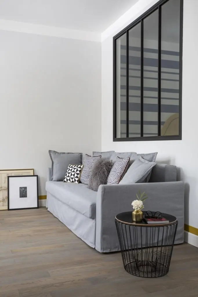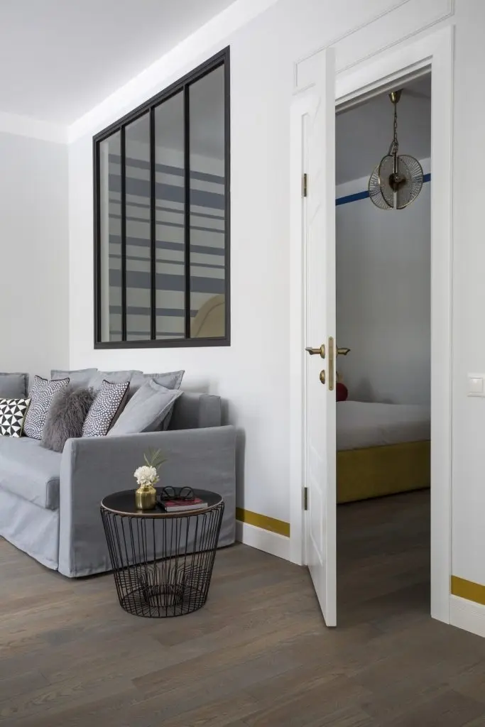 Reamenajarea a constat in crearea unui dormitor, un hol cu spatii de depozitare incastrate in perete si integrarea bucatariei in zona de zi. Provocarea proiectului a fost de a aduce lumina naturala si in dormitorul nou creat. Solutia gasita de Olga a fost pe cat de simpla, pe atat de eficienta: integrarea unei ferestre false in peretele-partitie care delimiteaza noua incapere.