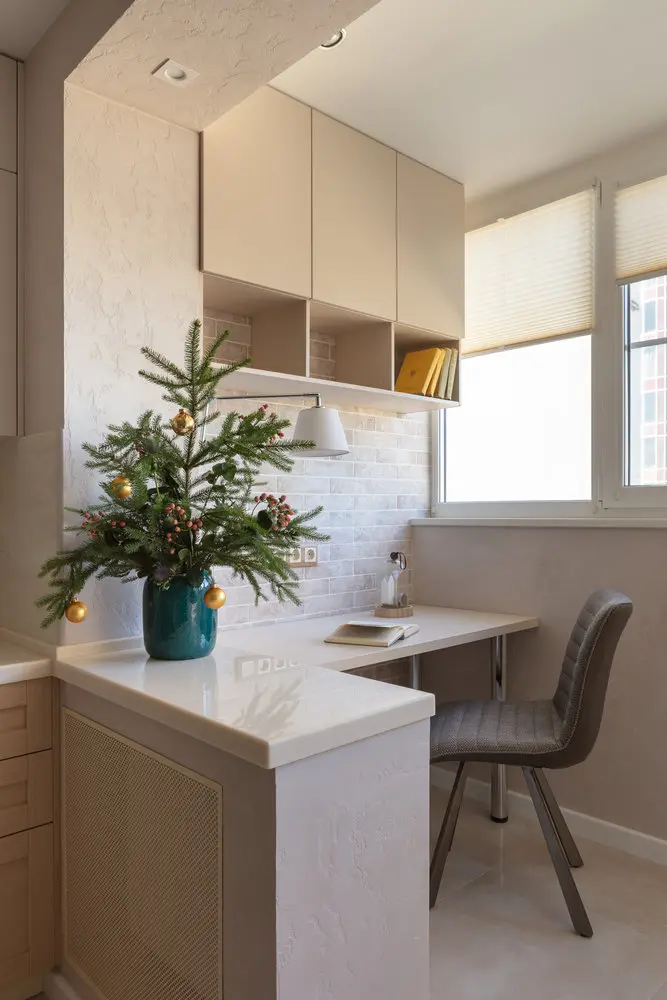 In bucatarie Anna a optat pentru un mobilier compact, cu electrocasnice incorporate, pastrand totul cat mai unitar si ordonat. Cromatic s-au folosit nunate deschise de crem pentru a amplifica senzatia de spatialitate. Aceasta pare mai spatioasa si datorita eliminarii usilor de la balcon. In noul spatiu obtinut, a fost integrata o zona de birou, folosita de parinti pentru lucrul de acasa atunci cand este cazul.