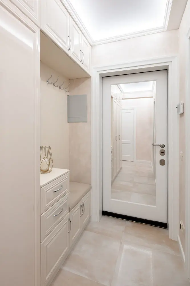 In fiecare camera in parte au fost gandite locuri pentru depozitare: pe hol gasim un dressing, in bucatarie s-a optat pentru dulapuri inalte pana in tavan, in mini birou sunt atat dulapuri inchise cat si rafturi pentru dosare iar in camera copiilor, cu putina imaginatie, sub paturile fetelor au fost amplasate dulapuri si cutii speciale pentru jucarii.