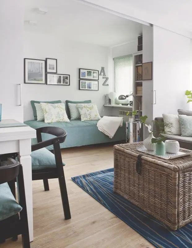 In plus, in locul unui zid acum eliminat, au fost montate doua usi culisante pentru a crea un dormitor pentru oaspeti. Cele doua spatii comunica vizual prin acelasi tip de pardoseala dintr-o esenta de lemn de stejar.