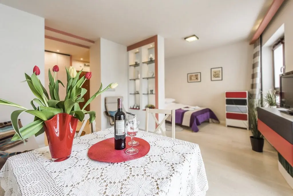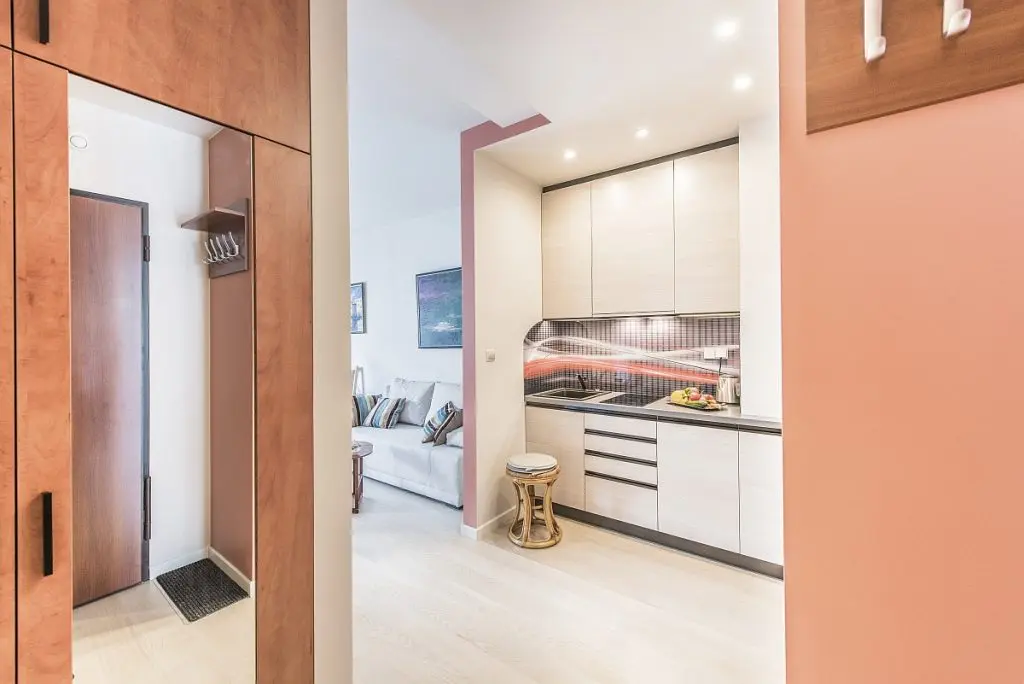 Deschide GaleriaApartamentul de 27 metri patrati se afla intr-un imobil din Varsovia. Probabil vei fi atras(a) de atmosfera de vacanta a acestei locuinte, insa detaliul care face acest spatiu si mai special este amenajarea unui dormitor printr-o delimitare foarte ingenioasa de zona de zi. Astfel, spatiul mic beneficiaza de toate zonele functionale necesare unei locuinte in care isi petrece timpul o persoana tanara, cu un stil de viata activ.
