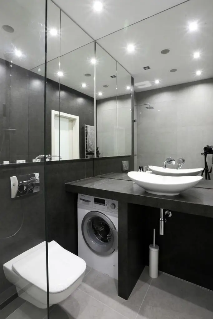 Deschide GaleriaCel mai utilizat loc pentru masina de spalat este baia. In cazurile cu doua bai, spatiul din baia de serviciu se poate transforma intr-o zona de spalatorie.