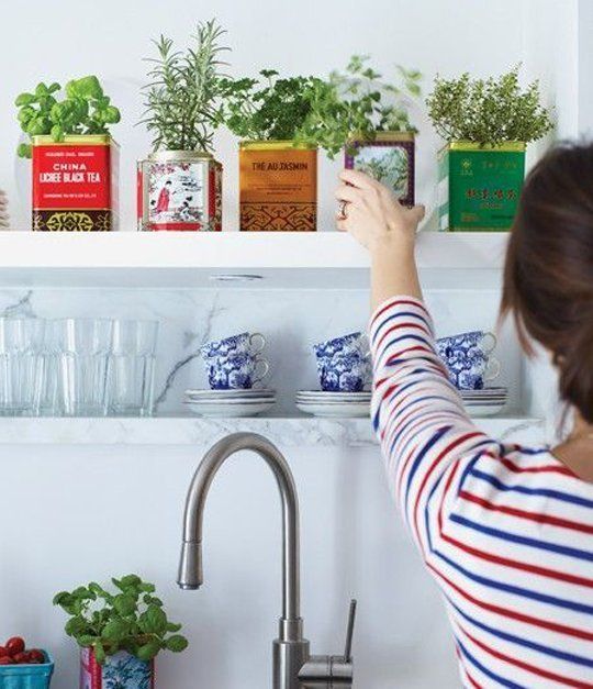 Cresteti ierburi in ele. Creati-va o mini gradina in bucatarie din plante crescute in cutii din metal. Le puteti folosi chiar si pentru aranjamente florale. Data viitoare cand veti servi masa in familie, creati un aspect vintage.