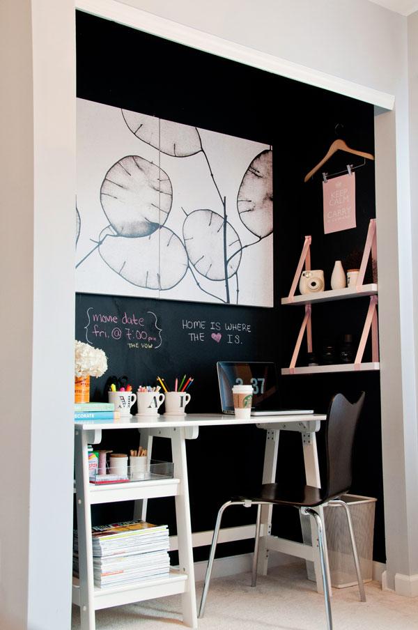 Asadar, un perete vopsit in tabla scolara sau o zona inalta de 1 metru de la podea pe toti peretii poate sa va usureze munca de zi cu zi, iar cel mic poate desena in voie cu creta colorata dupa cat ii pofteste inima.