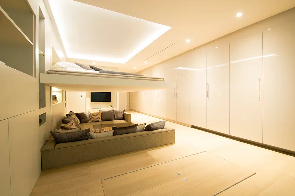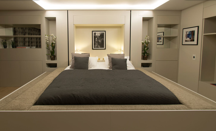 Prin intermediul unor functii incorporate in perti, podea si tavan, unele parti ale camerei culiseaza si pun in miscare diverse piese de mobilier, acestea putand fi mascate sau descoperite cu usurinta, in functie de necesitati.